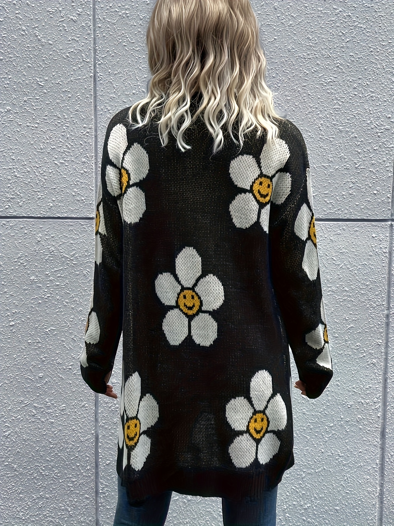 [Floral Cardigan] Plus Size - Plus Size - Women's Elegant Floral Cardigan - Long Sleeve Open Front Sweater with Button Closure, Chic Layering Piece for Fall/Winter, Office, Party, Everyday Outfits - Women's Fashion Sweater, Sweater Cardigan, Party Attire