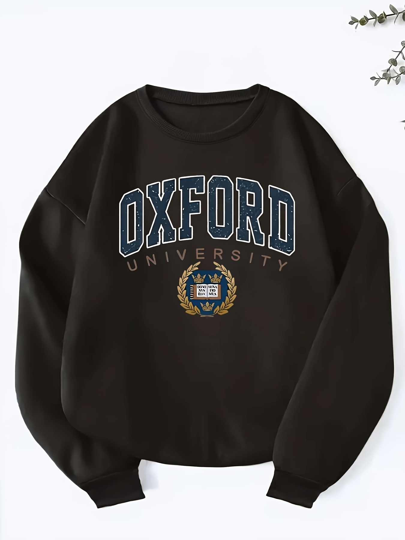 [Oxford University Alphabet Print] Oxford University Alphabet Print Sweatshirt - Casual Crew Neck, Thickened Lined Long Sleeve, 100% Polyester Knit Fabric, 250gsm - Black