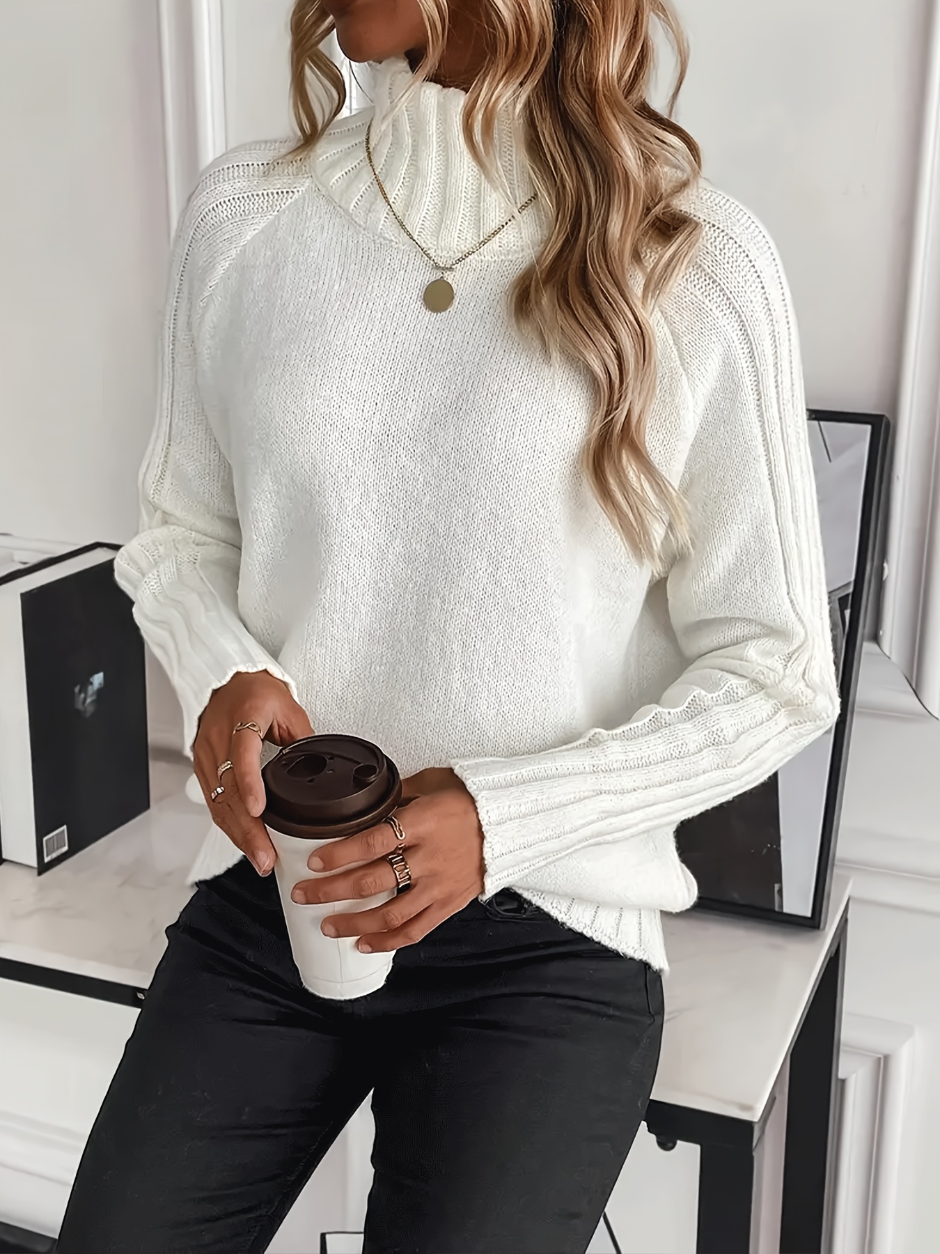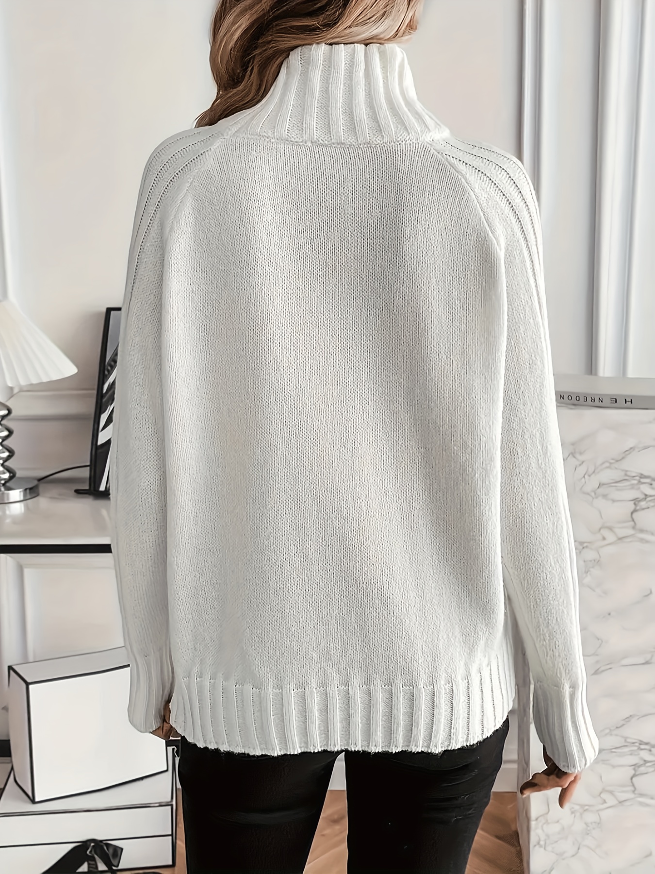 [Plus Size Turtleneck Sweater] Plus Size - A Cozy Solid Color Turtleneck Sweater - Soft, Plus Size, Long Raglan Sleeves, an Essential Staple for Women's Autumn And Winter Wardrobes - Perfect for Casual Everyday Wear, Layering, And Gifting