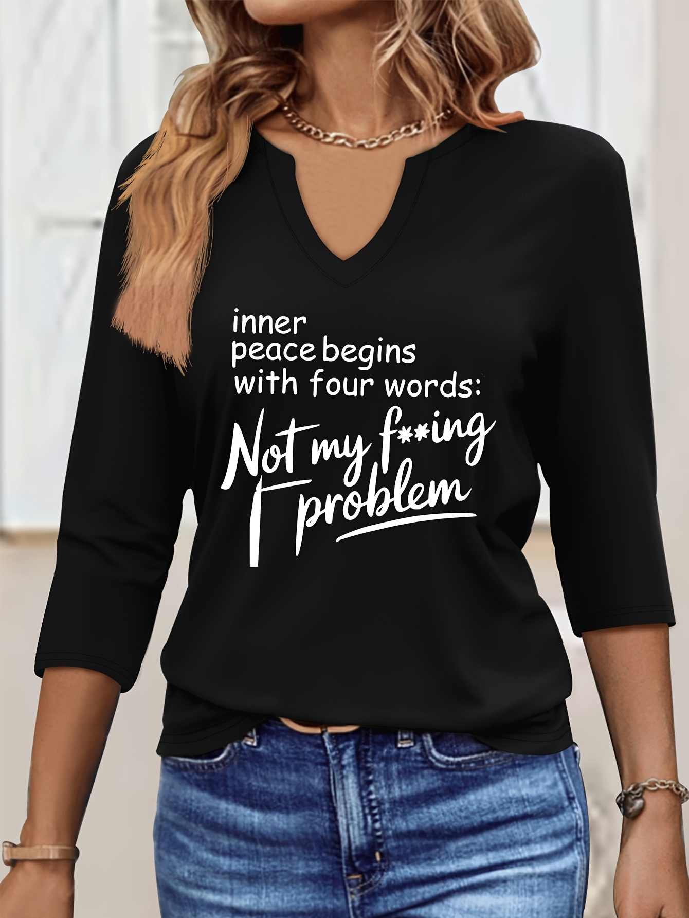 Women'S Casual V-Neck T-Shirt with "Inner Peace Begins with Four Words: Not My F***ing Problem" Print - Light Gray, Short Sleeve, Regular Length, Spring/Summer Top, Relaxed Fit Shirt | Bold Statement Top | Nontransparent Material